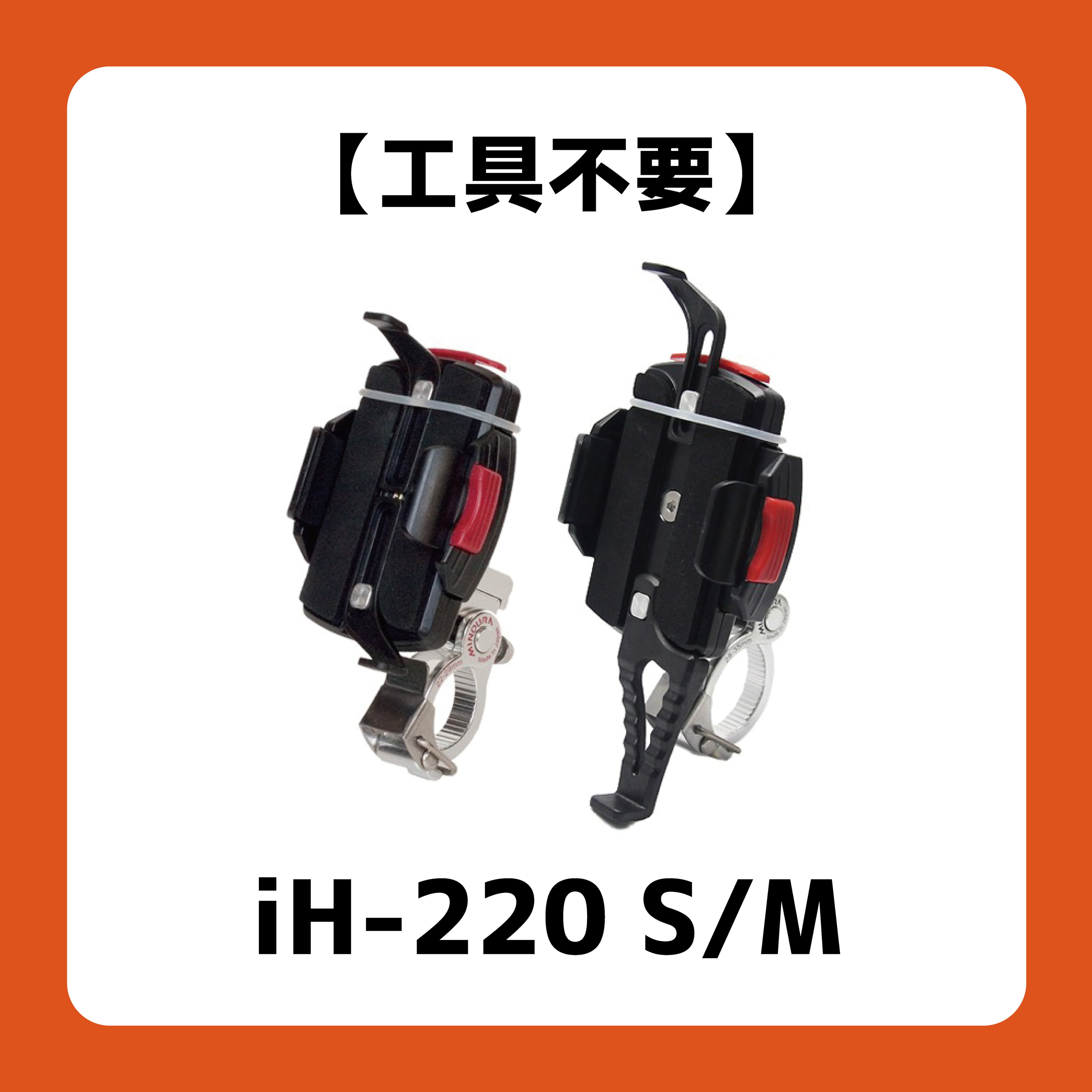 iH-220-M:28.6mm~35mmまで取付け可能。(スポーツバイクに多いハンドルサイズ/31.8mmも可)